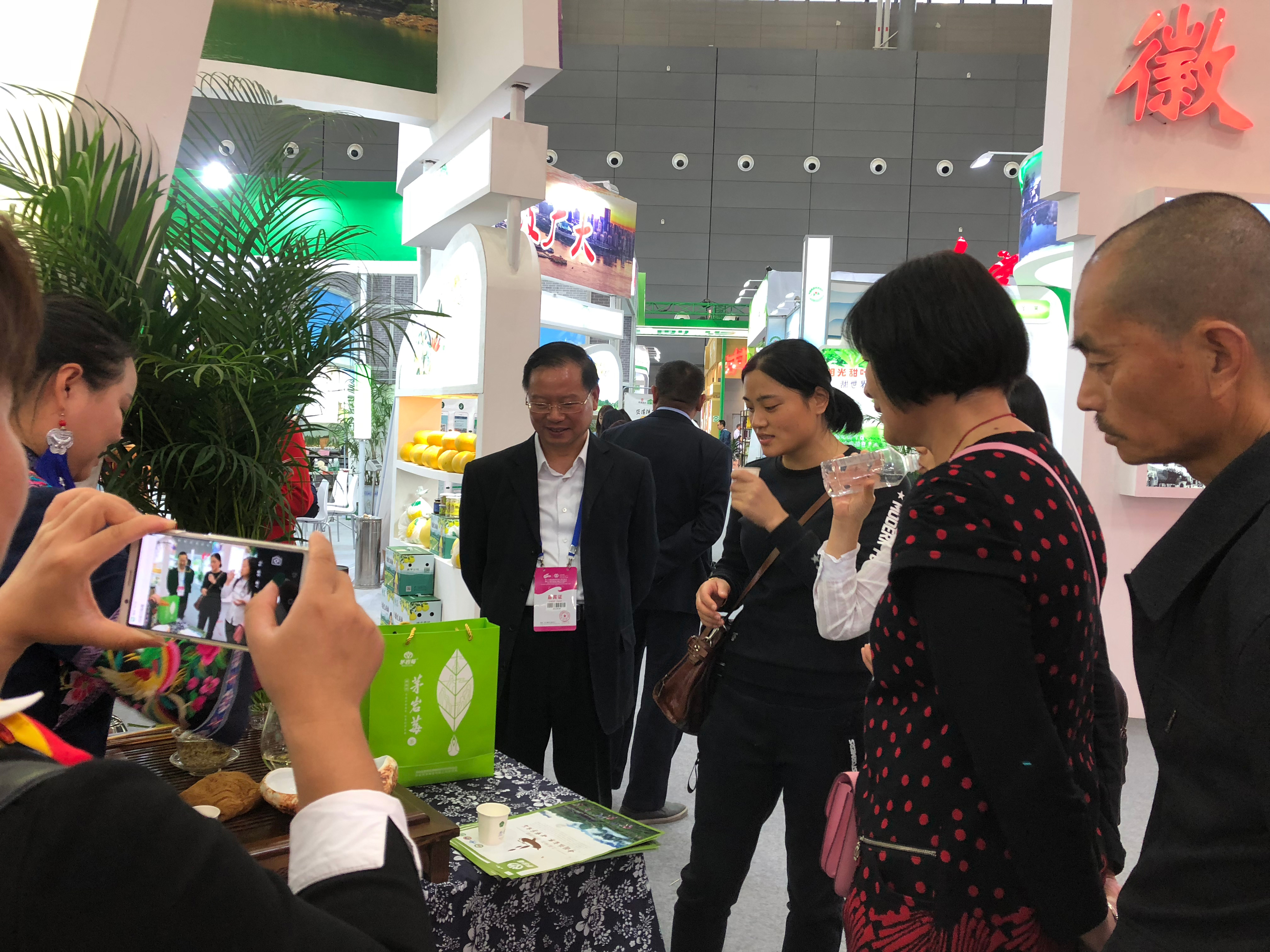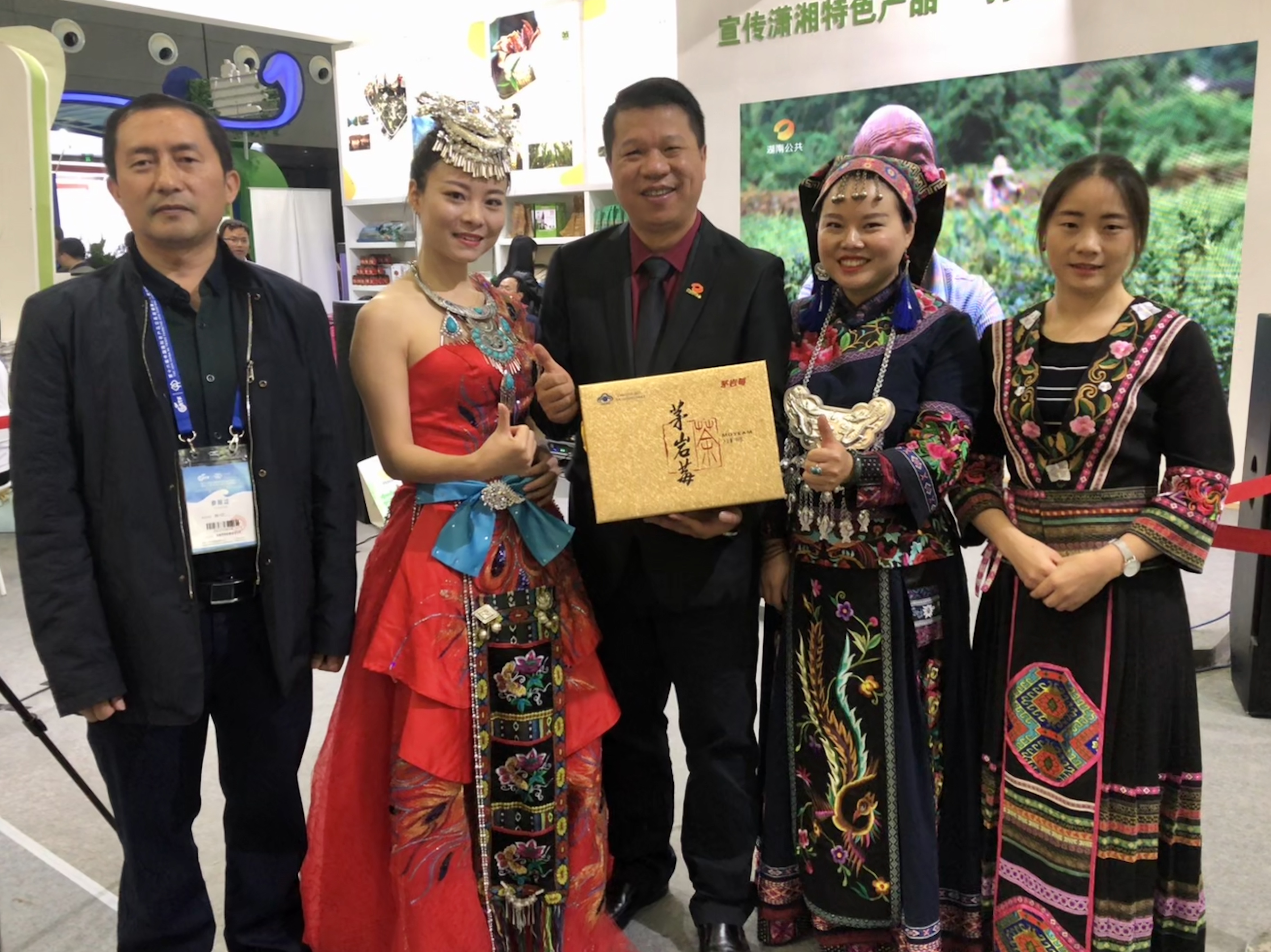湖南省綠辦朱建湘主任親自為“茅巖莓”茶宣傳,帶客戶來到“茅巖莓”展位現(xiàn)場并成交↓↓↓