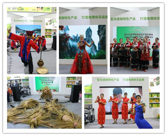 地標專展匯聚了來自全國各地的地理標志產(chǎn)品、有機產(chǎn)品、綠色食品等優(yōu)良產(chǎn)品。從一開館,地標展館就人山人海。要說吃好喝好樂好,那必須要來湖南館了。在省綠辦等單位領(lǐng)導的精心策劃下,湖南館的各個企業(yè)準備了富含各地特色的精彩節(jié)目。有《土家族茅古斯舞》、《土家族梯瑪祭祀》、永州的蛇舞、茶舞《采薇》;還有張家界茅巖莓有限公司的美女小姐姐帶來的《溜溜子十三寨》,一開嗓便吸引了許多觀眾駐足觀賞。