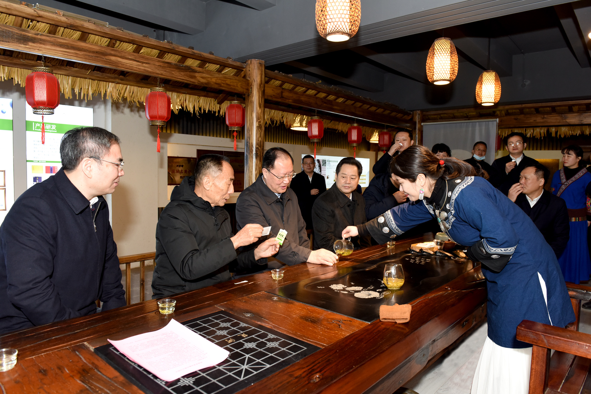 湖南省省長毛偉明在張家界市委書記虢正貴,市長劉革安,市委常委、市委秘書長單鑄飛等領(lǐng)導(dǎo)陪同下來張家界茅巖莓有限公司考查調(diào)研,毛偉明詳細(xì)了解企業(yè)生產(chǎn)經(jīng)營情況。得知茅巖莓茶已成為當(dāng)?shù)厝罕姷摹爸赂徊琛保珎ッ鞴膭?lì)企業(yè)繼續(xù)開展深加工,在品質(zhì)、工藝、標(biāo)準(zhǔn)上下功夫,將“一片葉子”發(fā)揚(yáng)光大,豐富旅游產(chǎn)品內(nèi)涵,帶動(dòng)更多老百姓致富。他喝了茅巖莓茶后感覺非常好的說,他有咽喉炎,喝了覺得嗓子特別舒服,回甘很好,對長期用嗓過度的老師群體也會(huì)有好處。