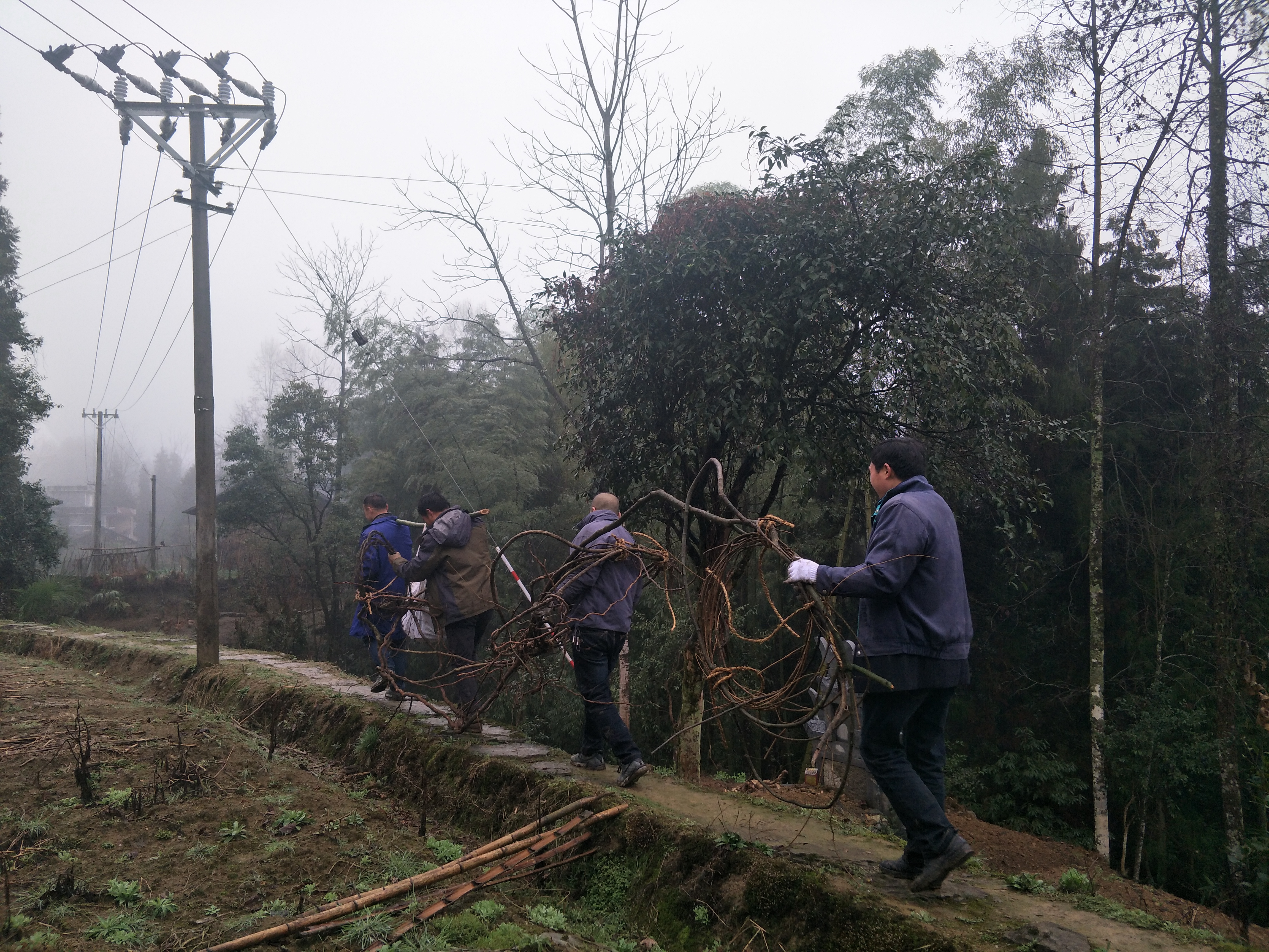 ?經(jīng)過一番修枝清理便開始動(dòng)土挖根,為了保護(hù)好這棵老樹根的完整及植物的適應(yīng)度,樹根上保留了些許當(dāng)?shù)氐哪嗤?,再給其添了幾袋泥土帶回備用。數(shù)百年的生長(zhǎng),根深蒂固,替這棵“莓茶藤王”遷徙是一項(xiàng)比較大的工程,四五人耗費(fèi)許大一番功夫才將其完全從這片土地請(qǐng)出來,再將其藤枝繞圈卷好,四人合力幫抬將其運(yùn)出大山。